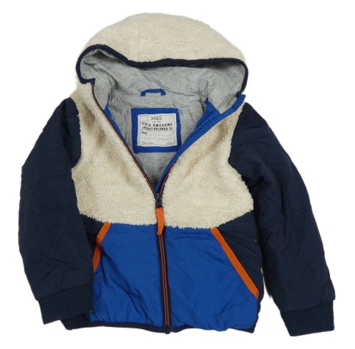 Tmavomodro-modro-smotanová šusťáková/huňatá zateplená bunda s kapucňou M&S