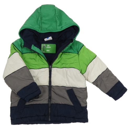 Zeleno-bielo-sivá šušťáková zimná bunda s kapucňou Topolino