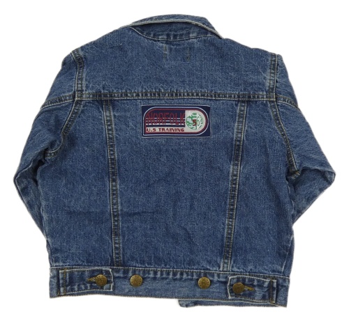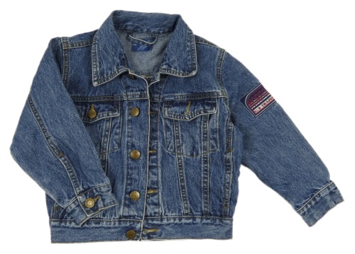 Tmavomodrá rifľová bunda s nášivkami