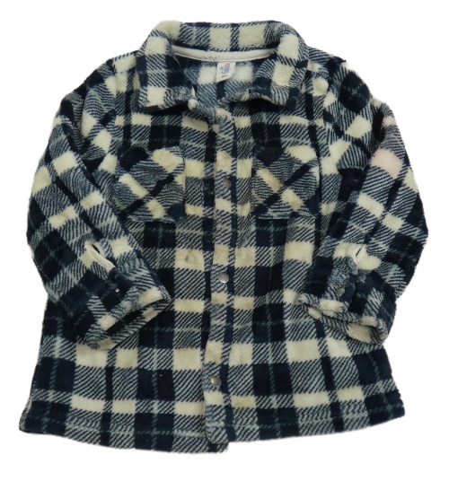 Tmavomodro-béžová kockovaná chlpatá košeľová bunda Topol