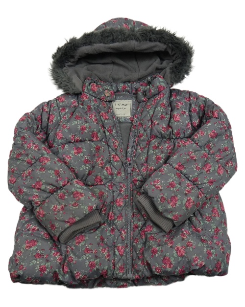 Sivo-vínová kvetovaná šušťáková zimná bunda s kapucňou Next