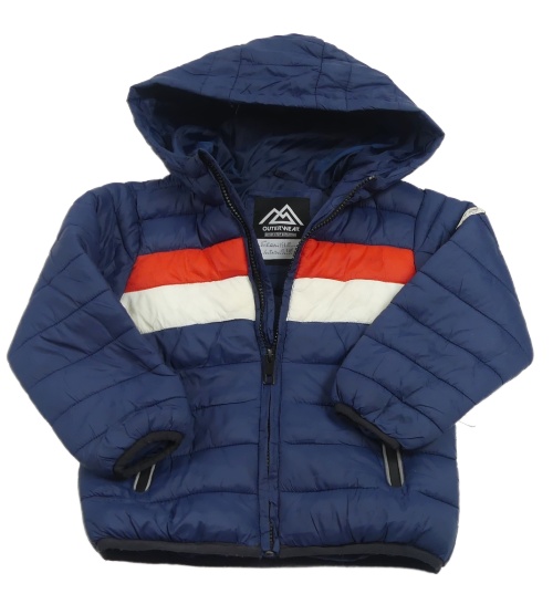 • Tmavomodro-bielo-červená prešívaná šušťáková zateplená bunda s nášivkou a kapucňou Matalan