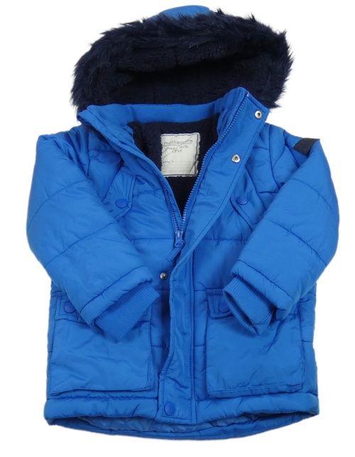 Modrá šušťáková zimná bunda s kapucňou a kožúškom Mothercare