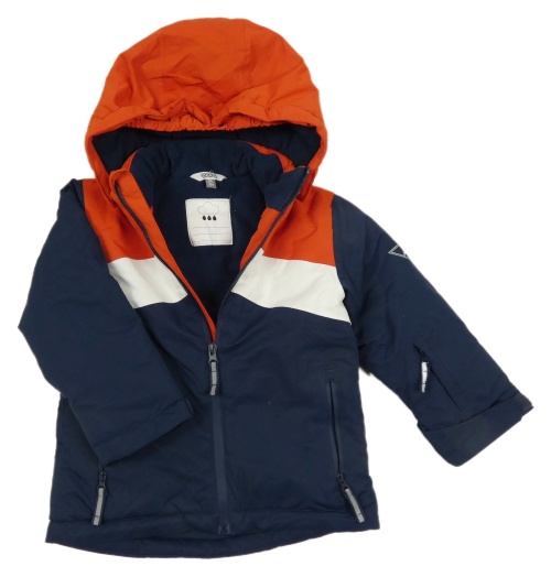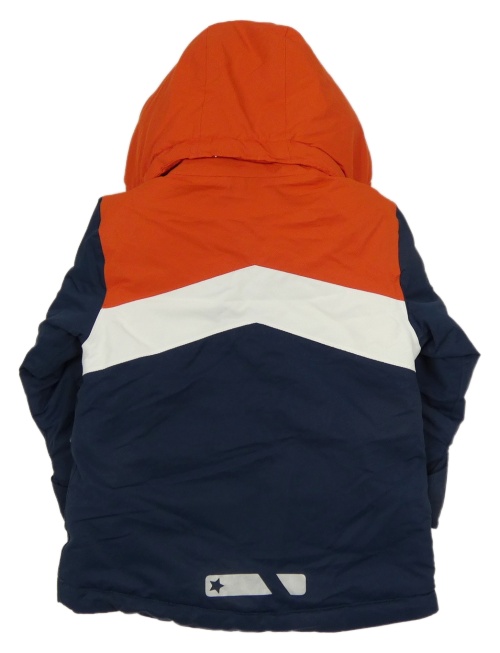 • Tmavomodro-bielo-červená šušťáková zimná lyžiarska bunda s odopínacíá kapucňou KIDS