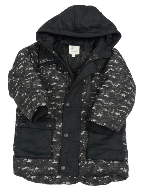Čierno-biela vzorovaná šušťáková zimná bunda s nápisom a kapucňou River Island