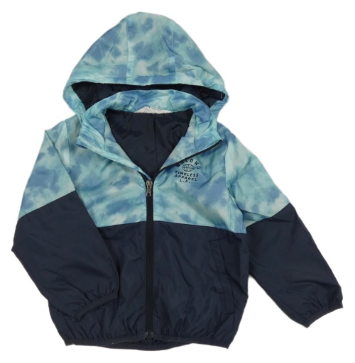 • Tmavomdro-modro-svetlomodrá šušťáková jarná bunda s nápismi a odopínacíá kapucňou H&M