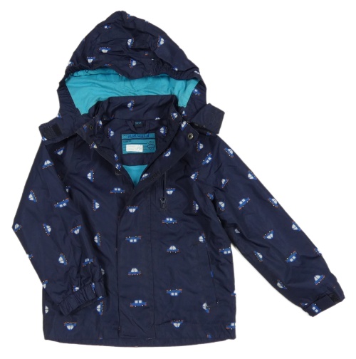 Tmavomodrá šušťáková jarná bunda s autami a kapucňou Pocopiano