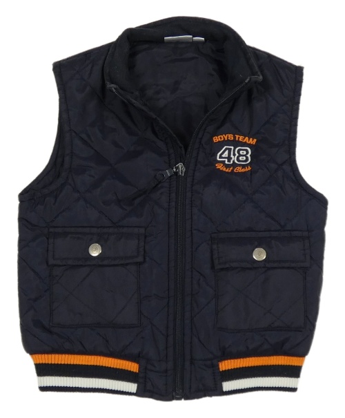 Tmavomodrá šušťáková prešívaná zateplená vesta s výšivkou Impidimpi