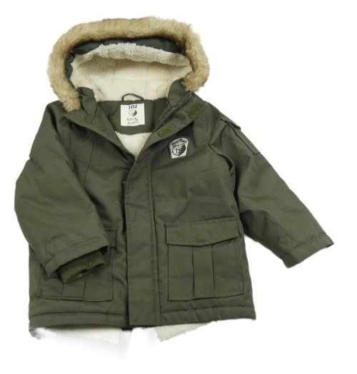Khaki šušťáková zimná bunda s nášivkou a kapucňou Kiki&Koko