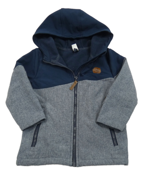 Tmavomodro-melírovaná softshellová bunda s nášivkou a kapucňou Topolino