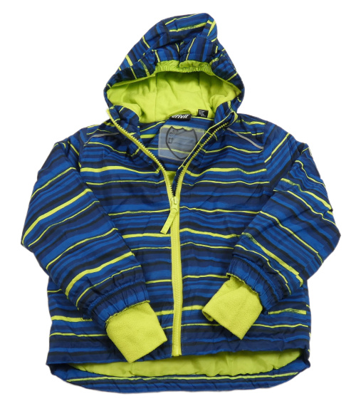 • Safírovo-čierno-limetková pruhovaná šušťáková funkčná zimná lyžiarska bunda s kapucňou crivit