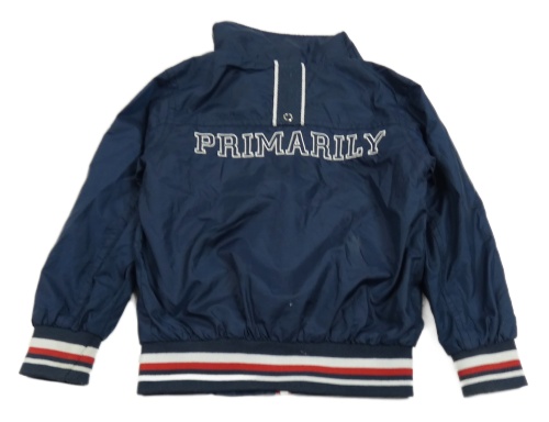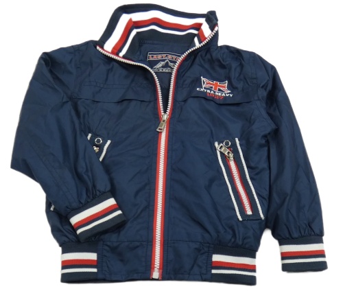 Tmavomodrá šušťáková jarná bunda s prúžkami