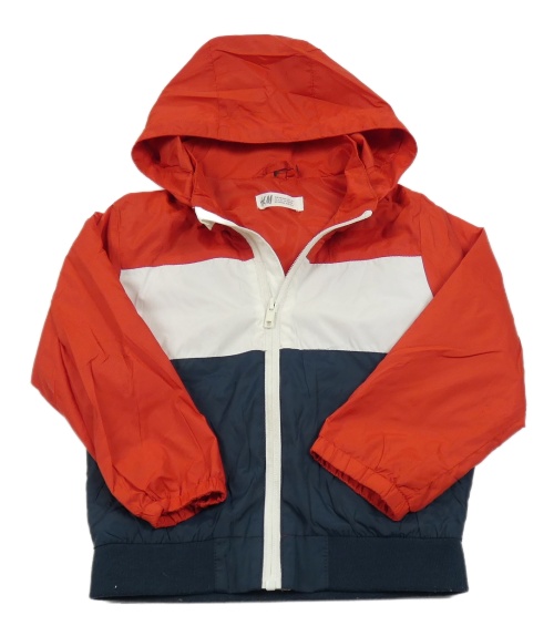 Červeno-bielo-tmavomodrá šušťáková jarná bunda s kapucňou H&M
