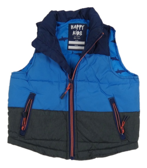 Modro-sivo-tmavomodrá šušťáková zateplená vesta tcm