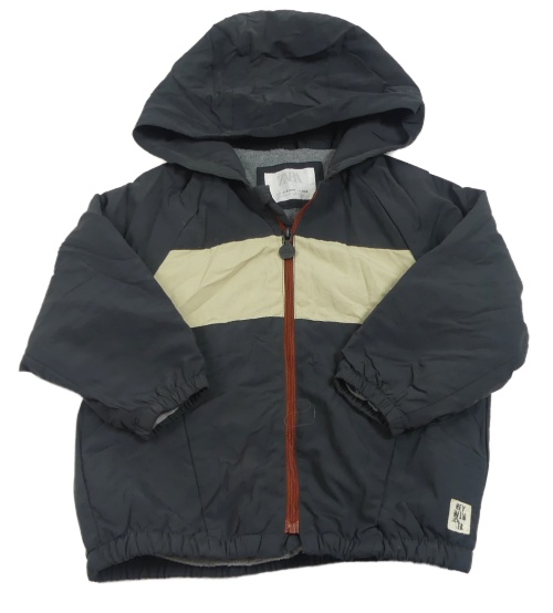 Antracitová šušťáková jarná bunda so smotanovým pruhom a kapucňou Zara