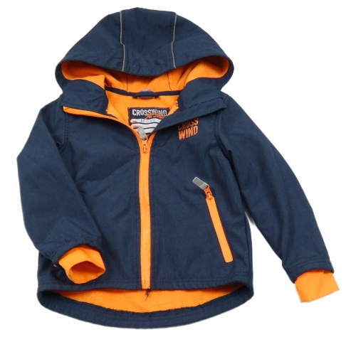• Tmavomodro-kriklavoě oranžová melírovaná softshellová bunda s nápismi a kapucňou dopodopo