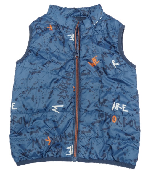 Tmavomodrá šušťáková zateplená vesta s fľakmi a nápismi Name it