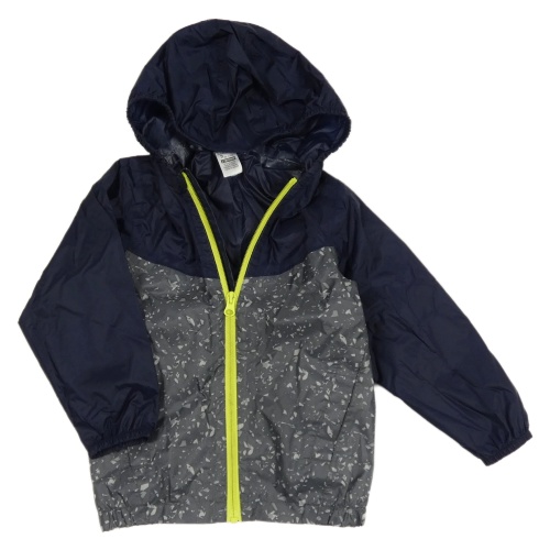 • Tmavomodro-tmavosivá šušťáková nepromokavá funkčná bunda so v zorem a kapucňou Quechua