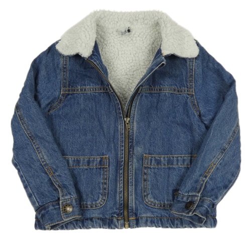 Modrá zateplená rifľová bunda s huňatým golierom Tu