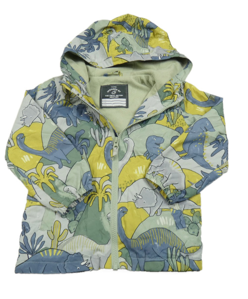• Světlezeleno-horčicová vzorovaná šušťáková jarná bunda s dinosaurami a kapucňou George