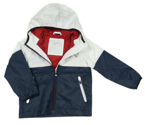 Tmavomodro-biela šušťáková jarná bunda s horami a kapucňou C&A