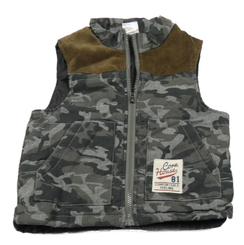 Sivá army plátenná zateplená vesta s nášivkou