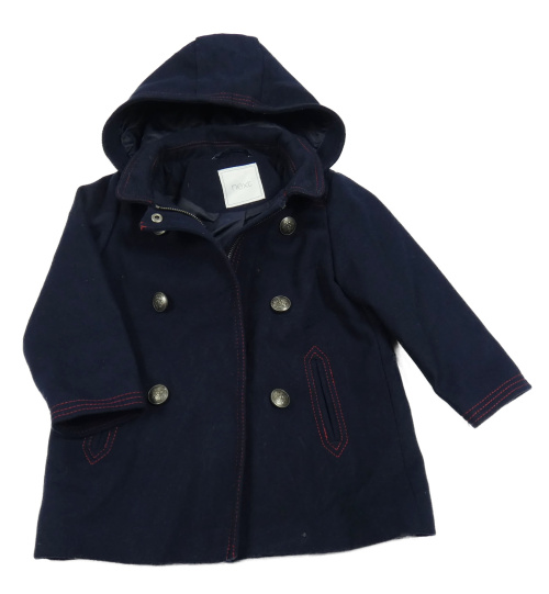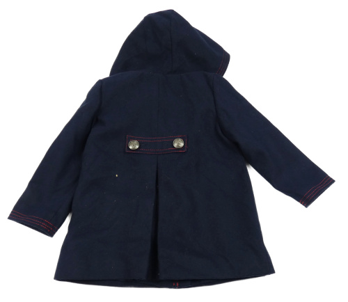 Tmavomodrý flaušový podšitý kabát s gombíky a kapucňou Next