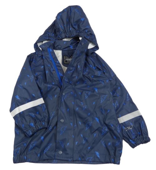 Tmavomodrá nepromokavá bunda s bleskami a kapucňou
