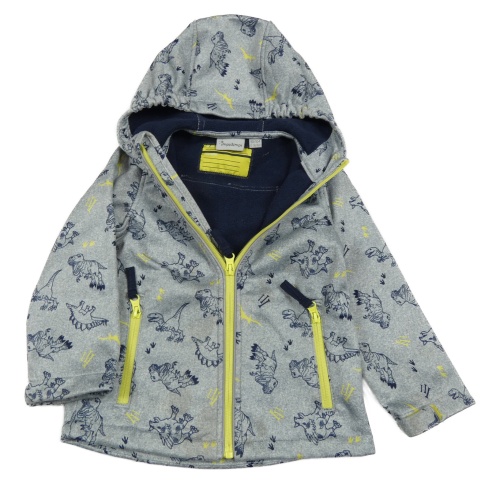 Sivá softshellová bunda s dinosaurami a kapucňou Impidimpi