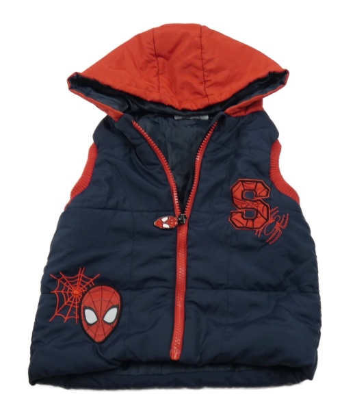 Tmavomodro-červená šušťáková zateplená vesta so Spidermanem a kapucňou Marvel