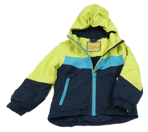 Tmavomodro-limetková šušťáková zimná bunda s kapucňou Lupilu