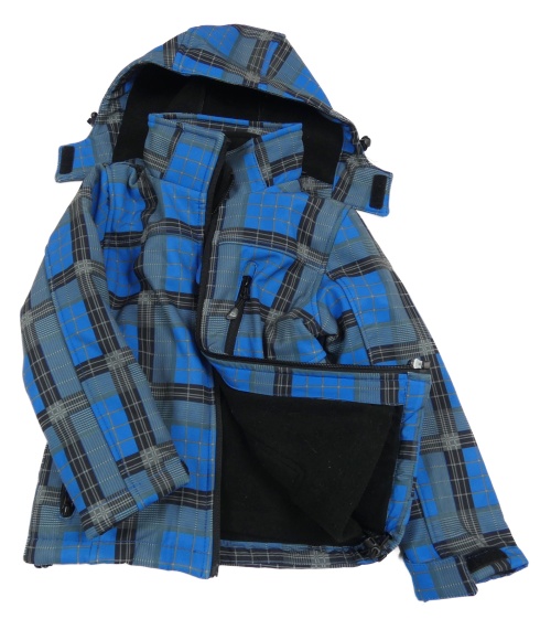 3v1 modro-čierno-sivá kockovaná softshellová celoroční bunda s kapucňou