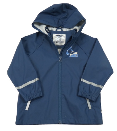 Tmavomodrá nepromokavá bunda s buldozerem a kapucňou lupilu