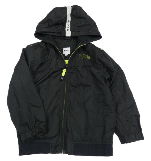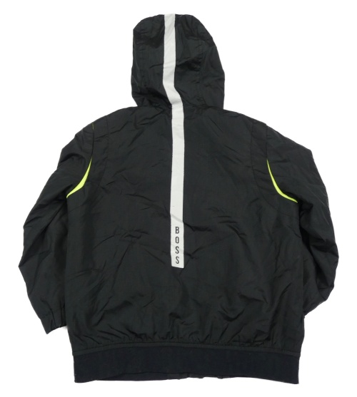 Čierna kockovaná šušťáková jarná bunda s logom a kapucňou HUGO BOSS