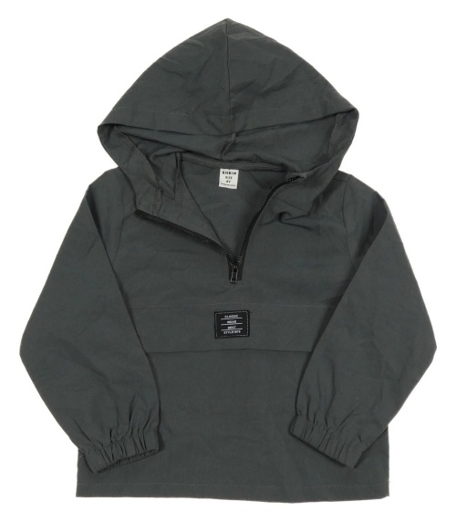 Tmavosivá šušťáková vetrovka s nášivkou a kapucňou SHEIN