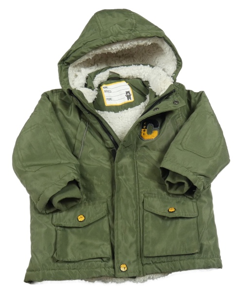 Khaki šušťáková zimná bunda s písmenkom a kapucňou Kiki&Koko