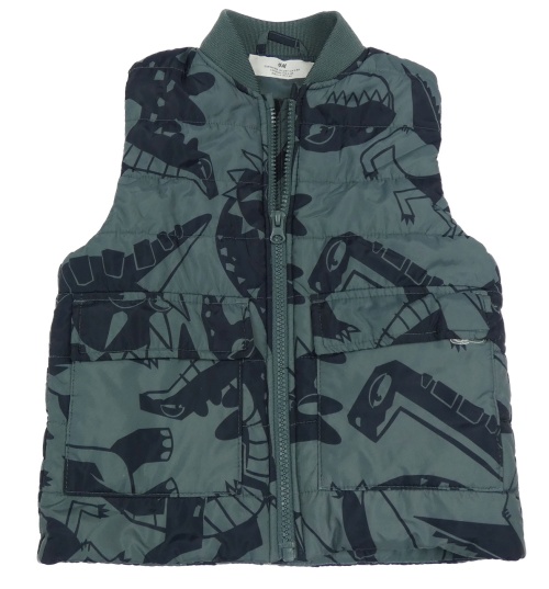Tmavozeleno-čierna šušťáková zateplená vesta s dinosaurami H&M