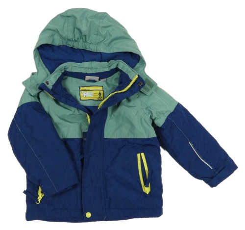 Modrozeleno-tmavomodrá šušťáková zimná lyžiarska bunda s kapucňou impidimpi