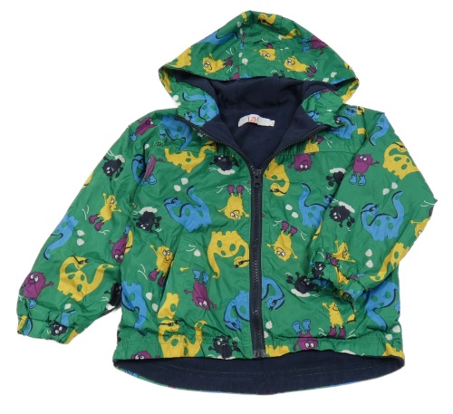Zeleno-farebná šušťáková jarná bunda s dinosaurami a kapucňou