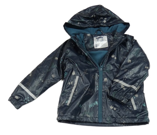 Tmavmodrá nepromokavá lehce zateplená bunda s dinosaurami a kapucňou Lupilu