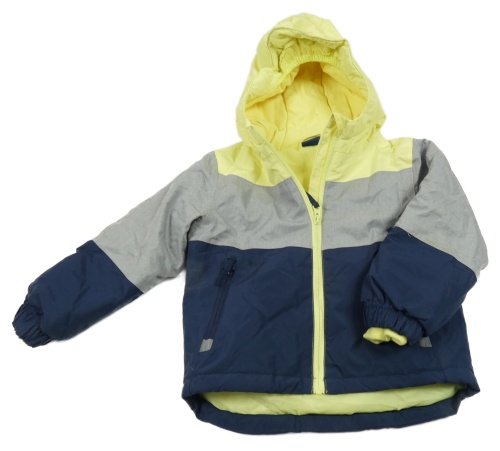Tmavomodro-sivo-žltá šušťáková zimná lyžiarska bunda s kapucňou Lupilu
