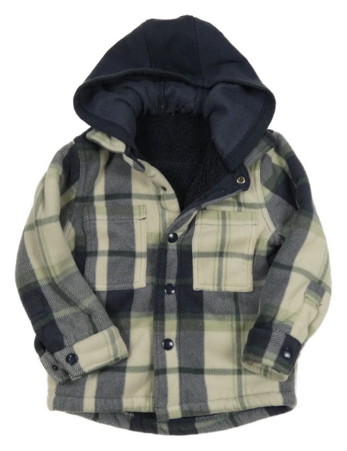 • Tmavomodro-smetanovo-khaki kockovaná plyšová košeľová zateplená bunda s kapucňou Dunnes