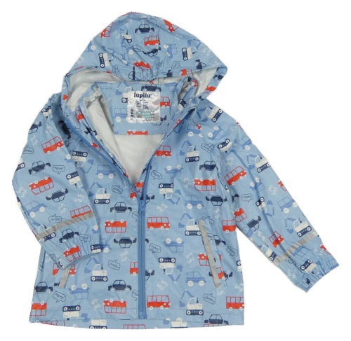Svetlomodrá nepromokavá bunda s autami a kapucňou Lupilu