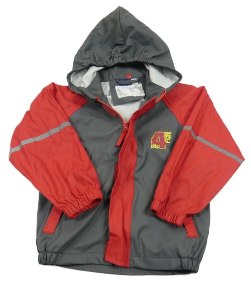 Sivo-červená nepromokavá bunda s číslom a kapucňou Lupilu