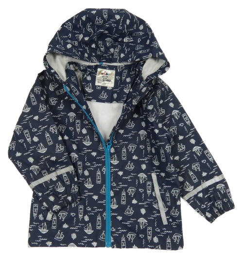 Tmavomodrá vodeodolná jarná bunda s loďkami a kapucňou kuniboo