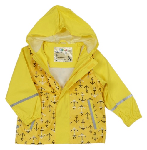 Žltá nepromokavá bunda s kotvami a kapucňou Lupilu