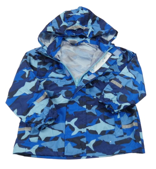 Modro-tmavomodrá šušťáková nepromokavá bunda so žralokmi a kapucňou Pocopiano