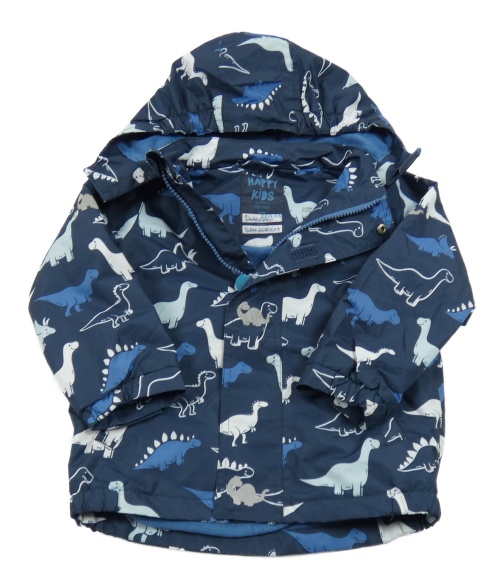 Tmavomodrá šušťáková zateplená bunda s dinosaurami a kapucňou TCM