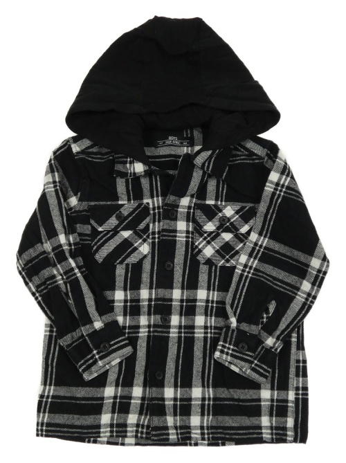 Čierno-biela kockovaná košeľová bunda s teplákovou kapucňou Matalan