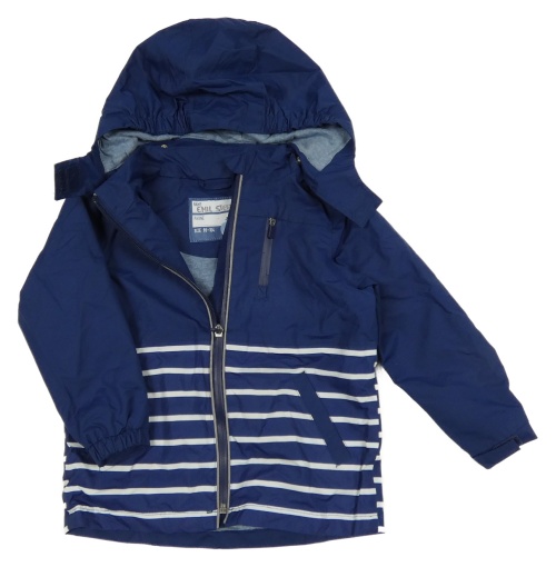 Tmavmoodro-biela pruhovaná šušťáková jarná bunda s odopínacíá kapucňou Tchibo
